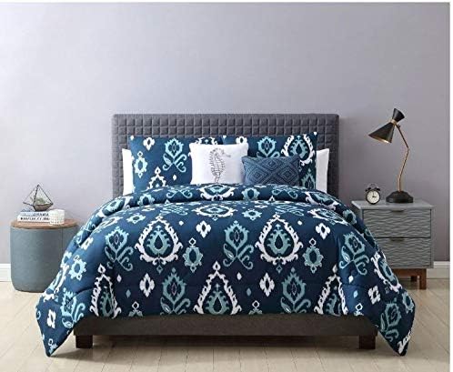 Amazon Com Geometric Comforter Set King Size White Blue Bohemian Floral Damask Print 5 Piece Bed Sets Hindi Exotic Style Reversible Bedding Nautical Girls Boys Bedroom Ultra Soft Microfiber Home Kitchen